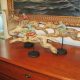 Pair of carved wood Long-tailed duck decoys with glass eyes, c. 1950. Hen is in preening position; drake is in swimming position and is branded “SS” on bottom. The Long-tailed duck , formerly known as the Old Squaw duck, is a small, delicately shaped bird that breeds in summer in arctic regions and winters off northern coasts. Its size and shape belie its toughness, as it can dive to depths of 200 feet and spends huge amount of its time under water. These ducks gather in large flocks and make an almost constant chatter.